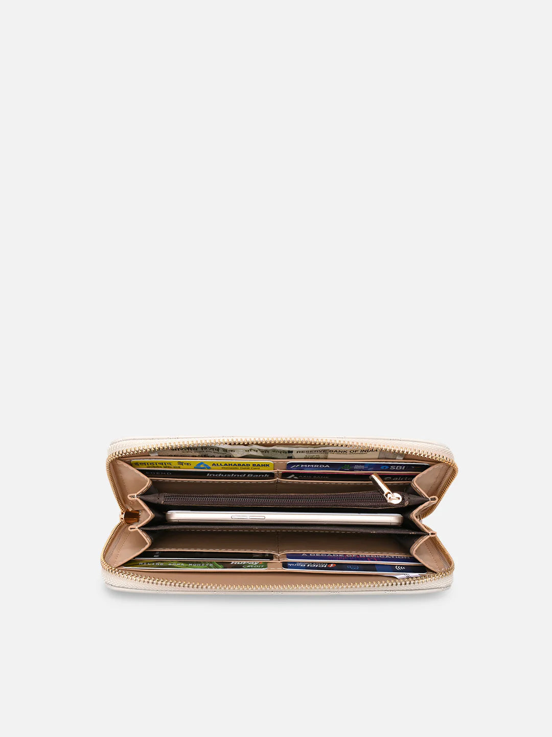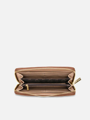 - Quina25 Zip-Around Wallet is a stunning accessory crafted from soft PU material & adorned with a distinctive quilted pattern.