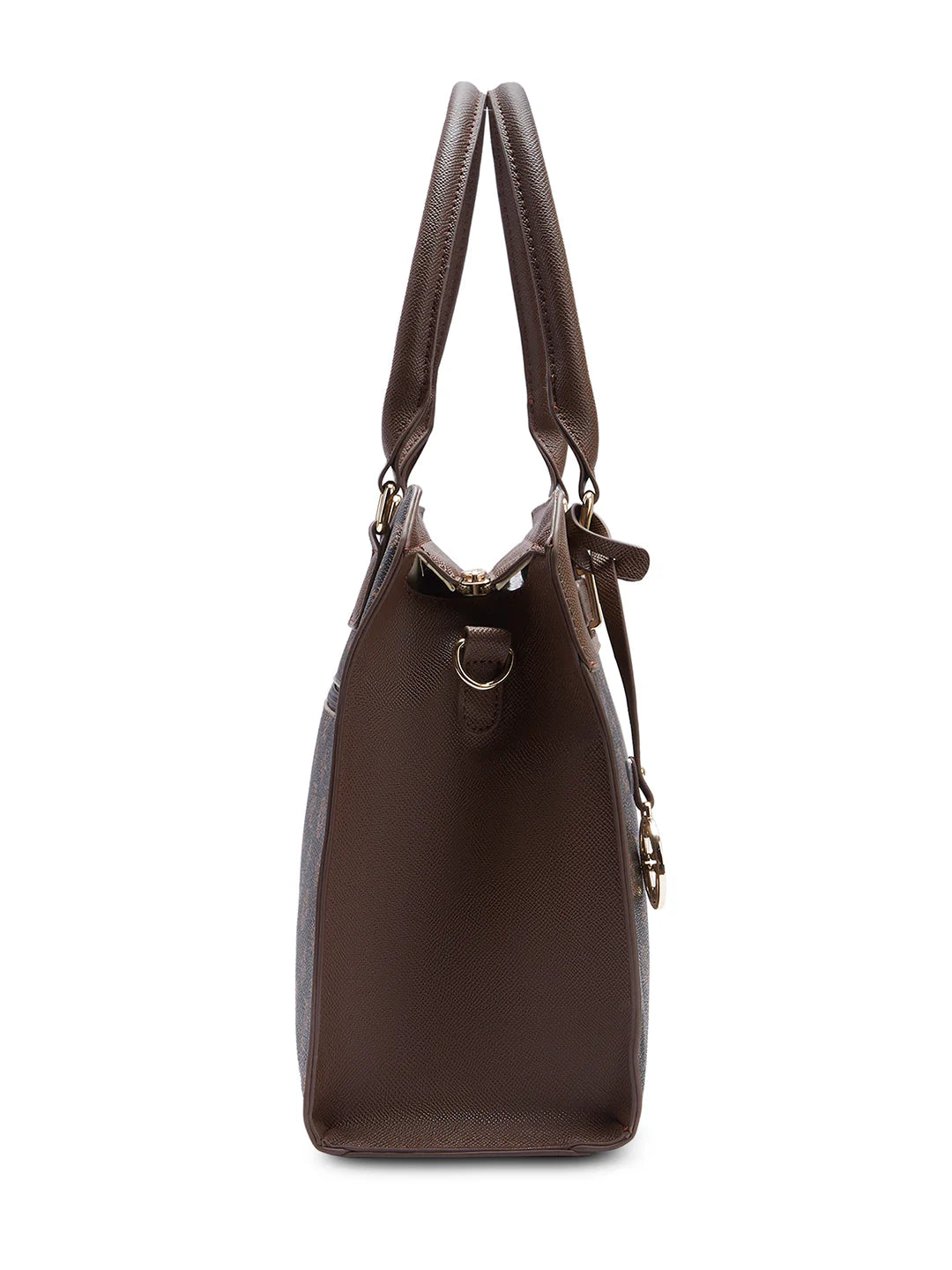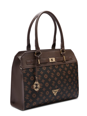 - With its elegant design, this Satchel by Lavie luxe serves as an ideal work bag, boasting a monogram-printed premium texture for a sophisticated touch.