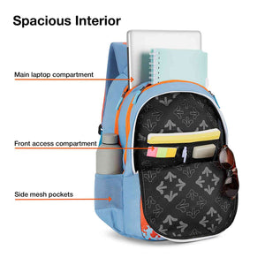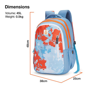 Durable Material: Crafted from sturdy polyester fabric, this backpack is built to safeguard your school or college essentials with durability and longevity. With a spacious of 45-liter capacity. The trendy printed design adds a stylish flair, making it a perfect match for casual outfits and uniforms.