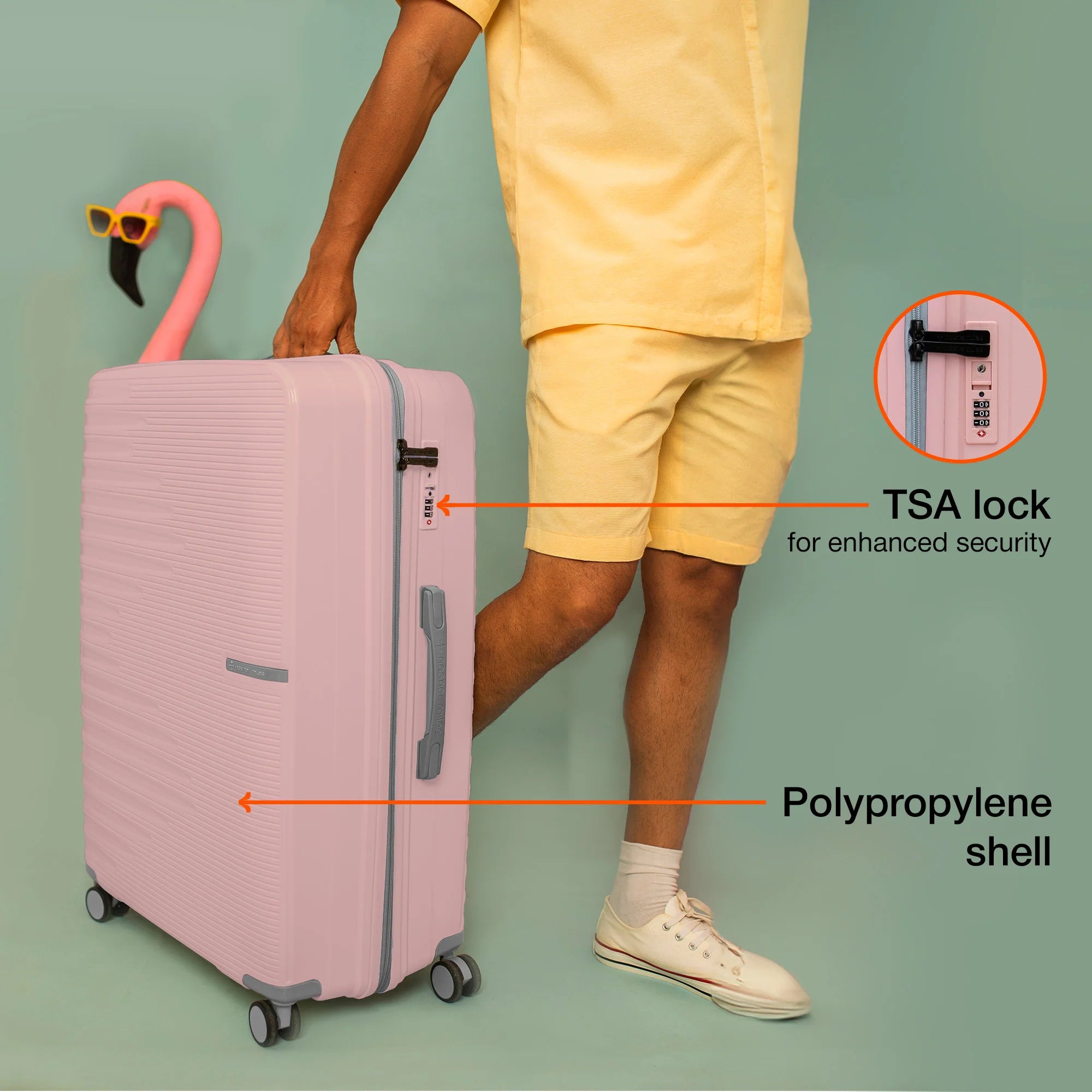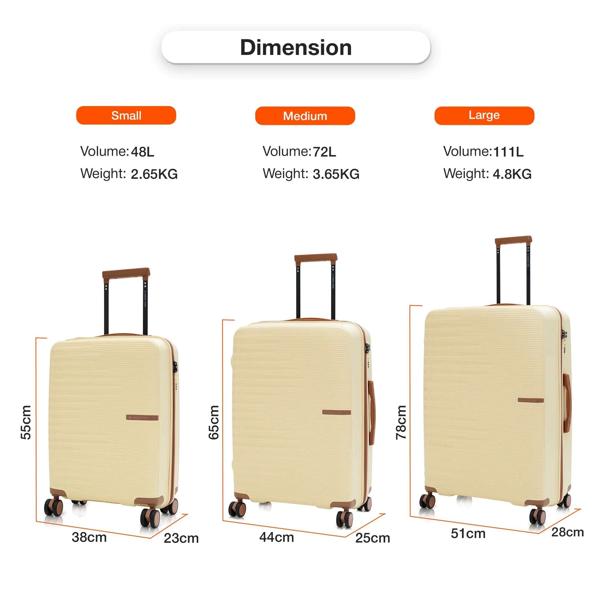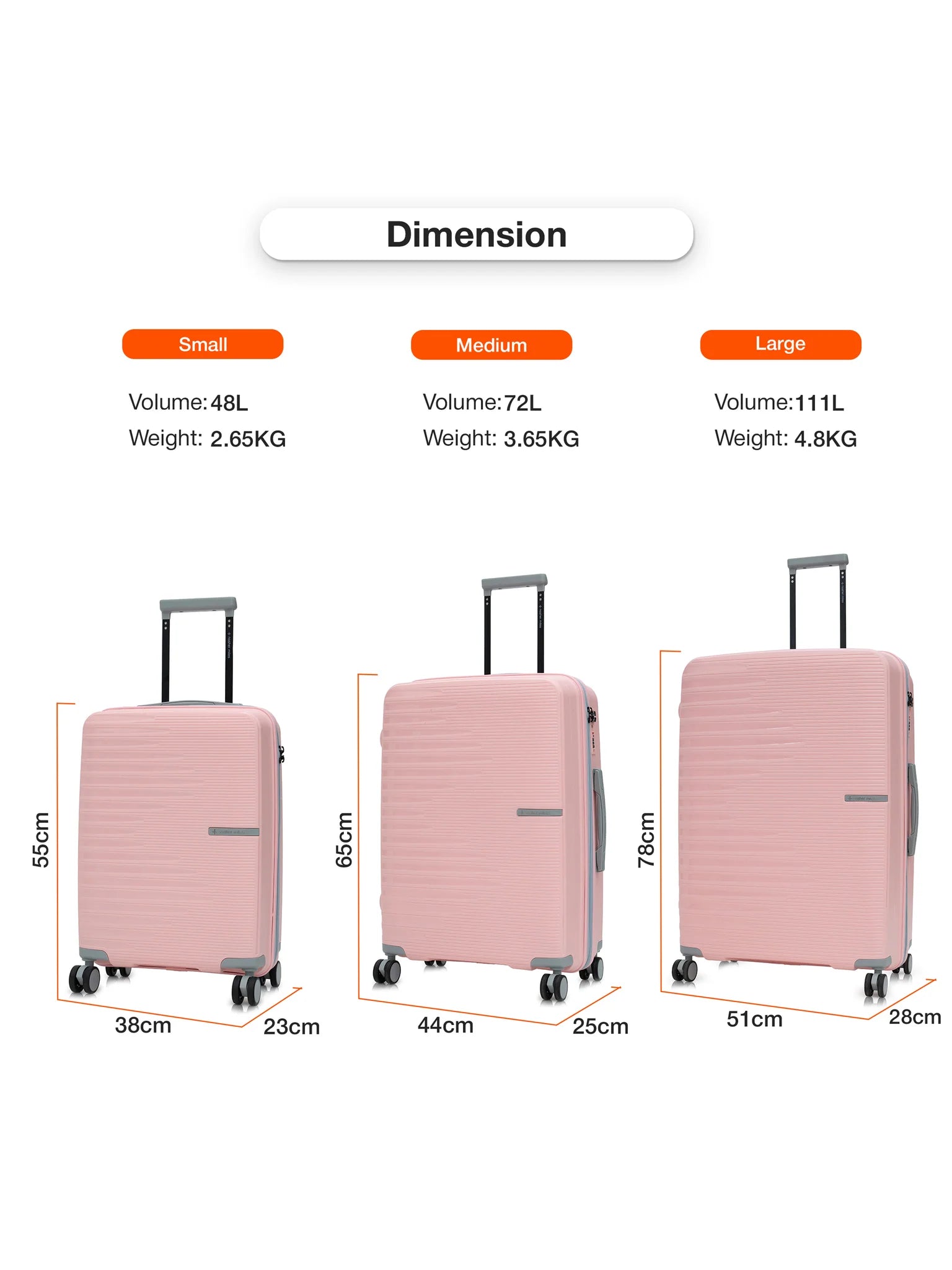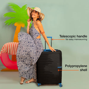 Large Lightweight Hard-Side Check-In Luggage: Experience exceptional capacity and durability with our large check-in luggage, crafted from unbreakable polypropylene. Designed to hold up to 25 kg, it’s perfect for accommodating essentials for a two-week trip or more.