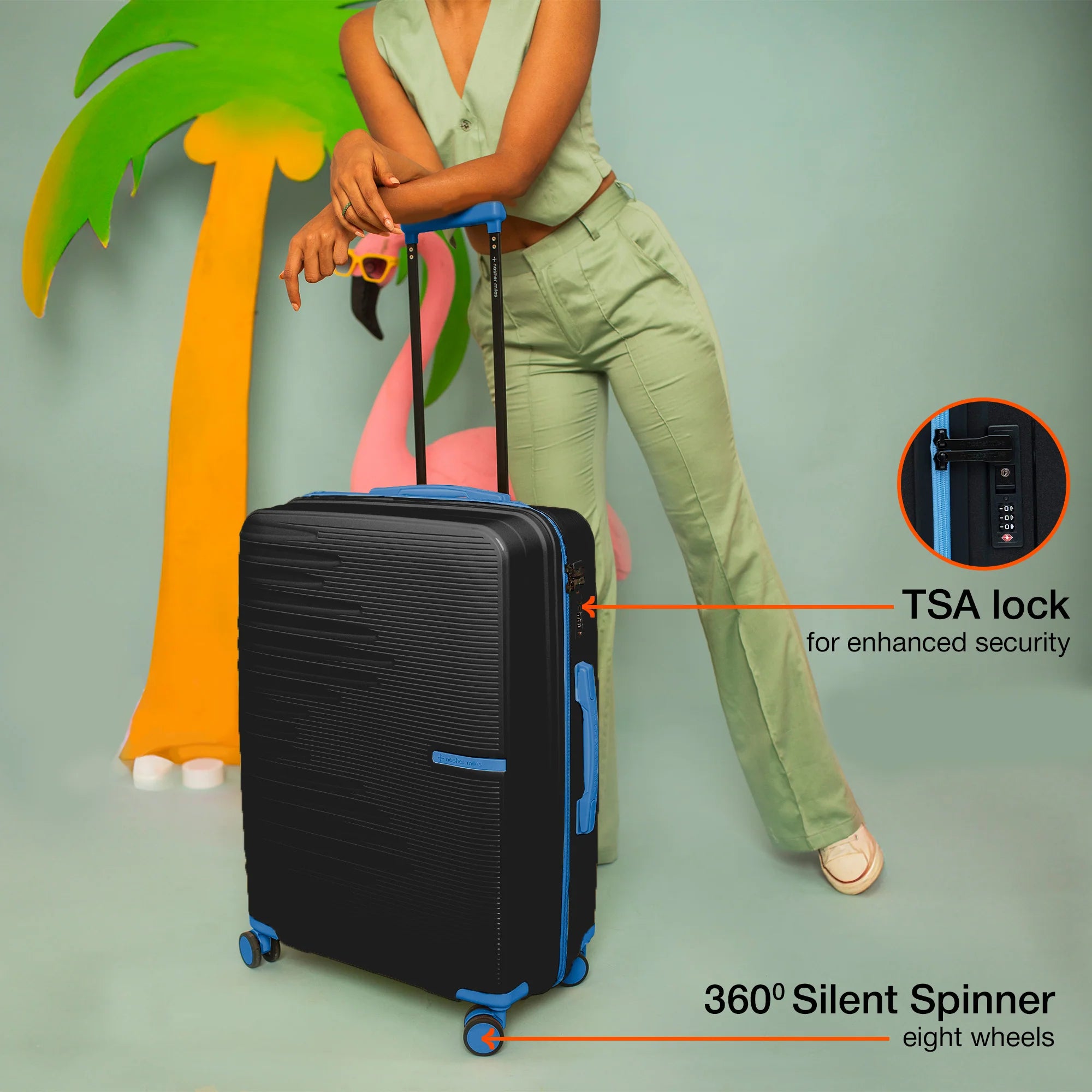 TSA Lock: Keep your belongings safe with the TSA-approved lock included with our lightweight luggage. This convenient feature ensures your items are protected while allowing TSA agents to inspect your bag when necessary, offering both security and ease during your travels, particularly when traveling to North America.