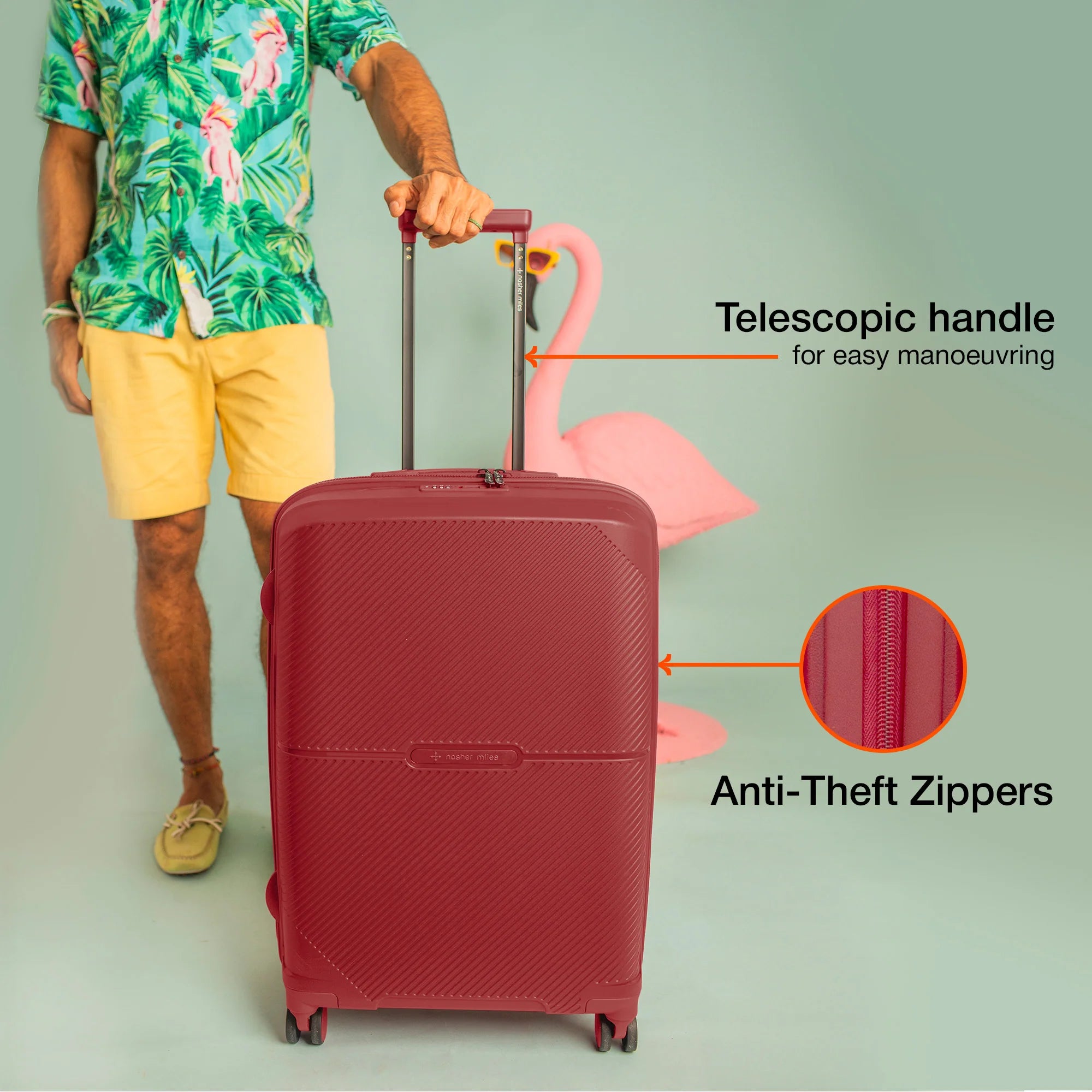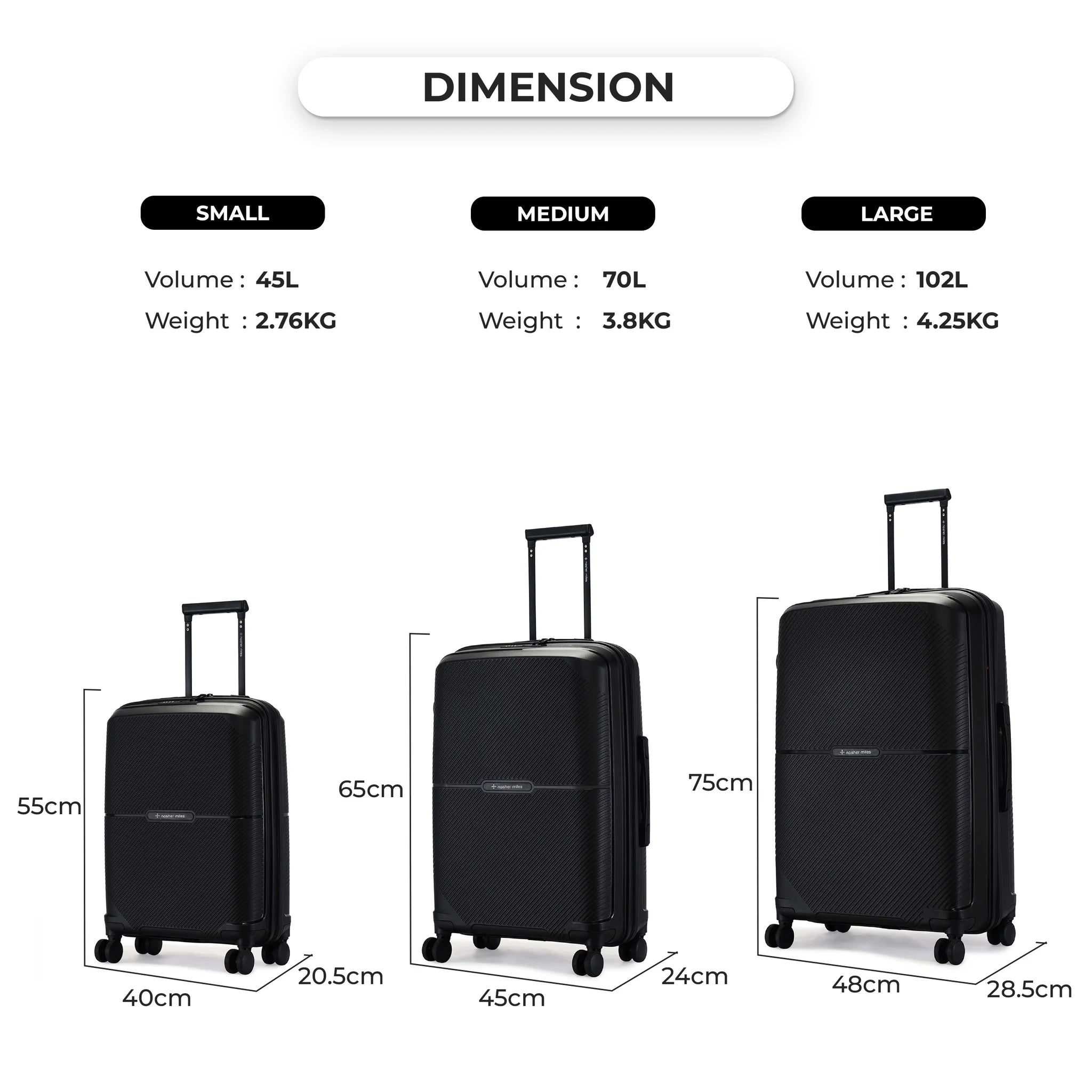 Large Lightweight Hard-Side Check-In Luggage (75cm/28 inches): Embrace exceptional capacity and durability with our large check-in luggage, crafted from unbreakable polypropylene. This luggage is designed to carry up to 25 kg of weight and can comfortably accommodate materials for a two-week trip or longer.