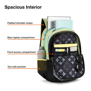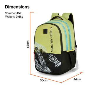 Durable Material: Crafted from sturdy polyester fabric, this backpack is built to safeguard your school or college essentials with durability and longevity. With a spacious of 45-liter capacity. The trendy printed design adds a stylish flair, making it a perfect match for casual outfits and uniforms.