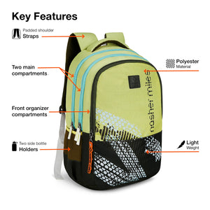 Smart Storage Solution: This backpack is designed with two main compartments for books and third compartment include multiple pockets such as mesh pocket, pen holder, and two slip pockets to organize gadgets and personal items. Additionally, it features a quick-access pocket for added convenience.