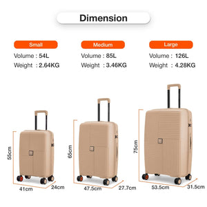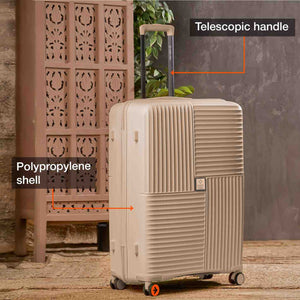 Large (L) - 28-inch lightweight hard side check-in luggage: is perfect for trips lasting longer than a week. It's crafted from unbreakable polypropylene material, ensuring exceptional protection for your belongings while you travel.