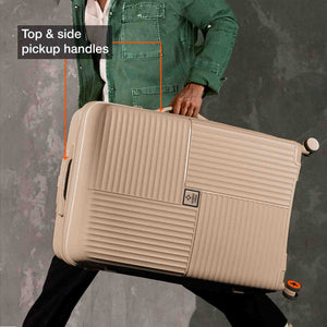 Easy to manoeuvre: Equipped with 8 wheels for stability and a telescopic handle adjustable to various heights for comfort. A top carry handle for convenient lifting is available, and in medium and large-sized luggage, there's an additional side carry handle for added convenience.