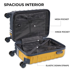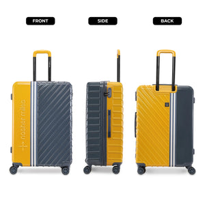 The Nasher Miles Vegas collection offers a range of hard-sided, polycarbonate luggage in various sizes, including cabin bags (20 inches), medium check-in bags (24 inches), and large check-in bags (28 inches).