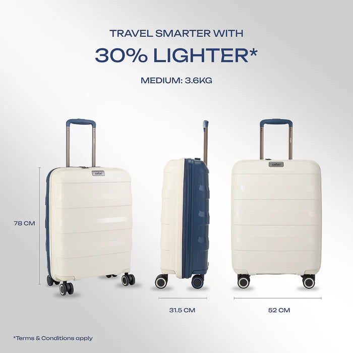afari Aeroglide Hard Luggage delivers premium performance for discerning travelers. Available in small, medium, and large sizes, this hard-shell luggage combines strength, style, and smart utility. Dual-tone Blue and Black options lend a refined touch to any journey. TSA-approved locks and anti-theft zippers ensure security, while a telescopic trolley handle and dual wheels provide smooth, easy movement. Interiors come thoughtfully organized for efficient packing. Lightweight construction makes handling effortless, backed by a five-year warranty for lasting reliability. Perfectly suited for both short trips and extended travel, Safari Aeroglide Hard Luggage blends functionality with elegance for every destination.