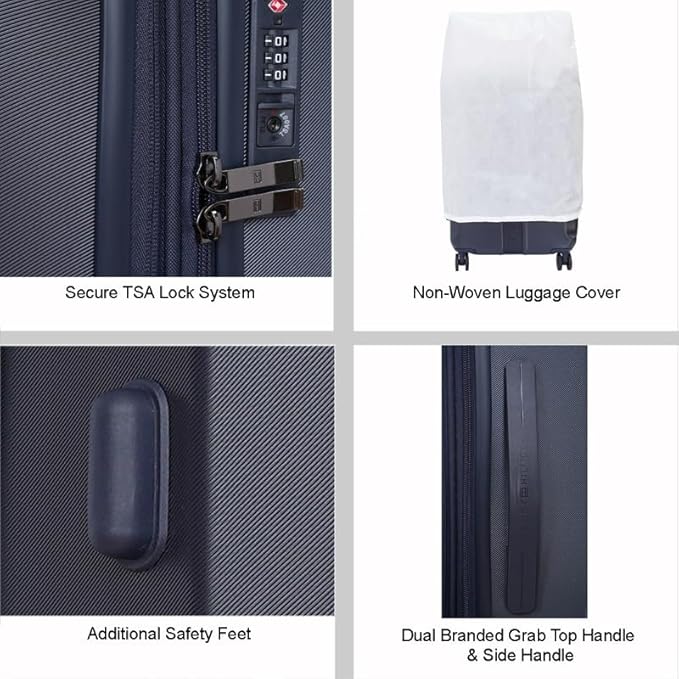 Black textured hard-sided cabin trolley suitcase secured with a buckle lock
