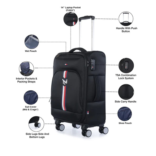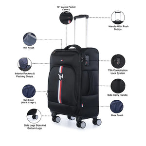 Tommy Hilfiger Kingsville Polyester Soft Luggage Unisex Trolley Bag -Black With TSA Lock/ 8 Wheels with 360 degree