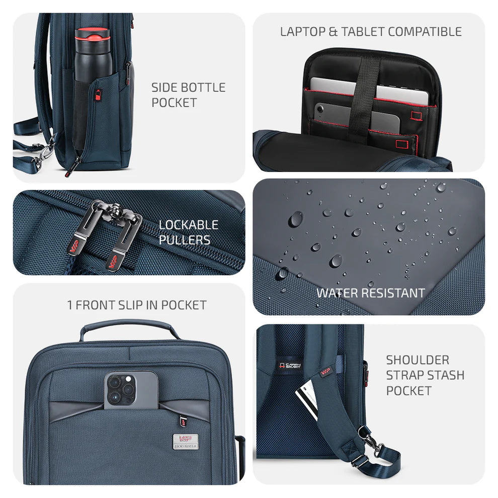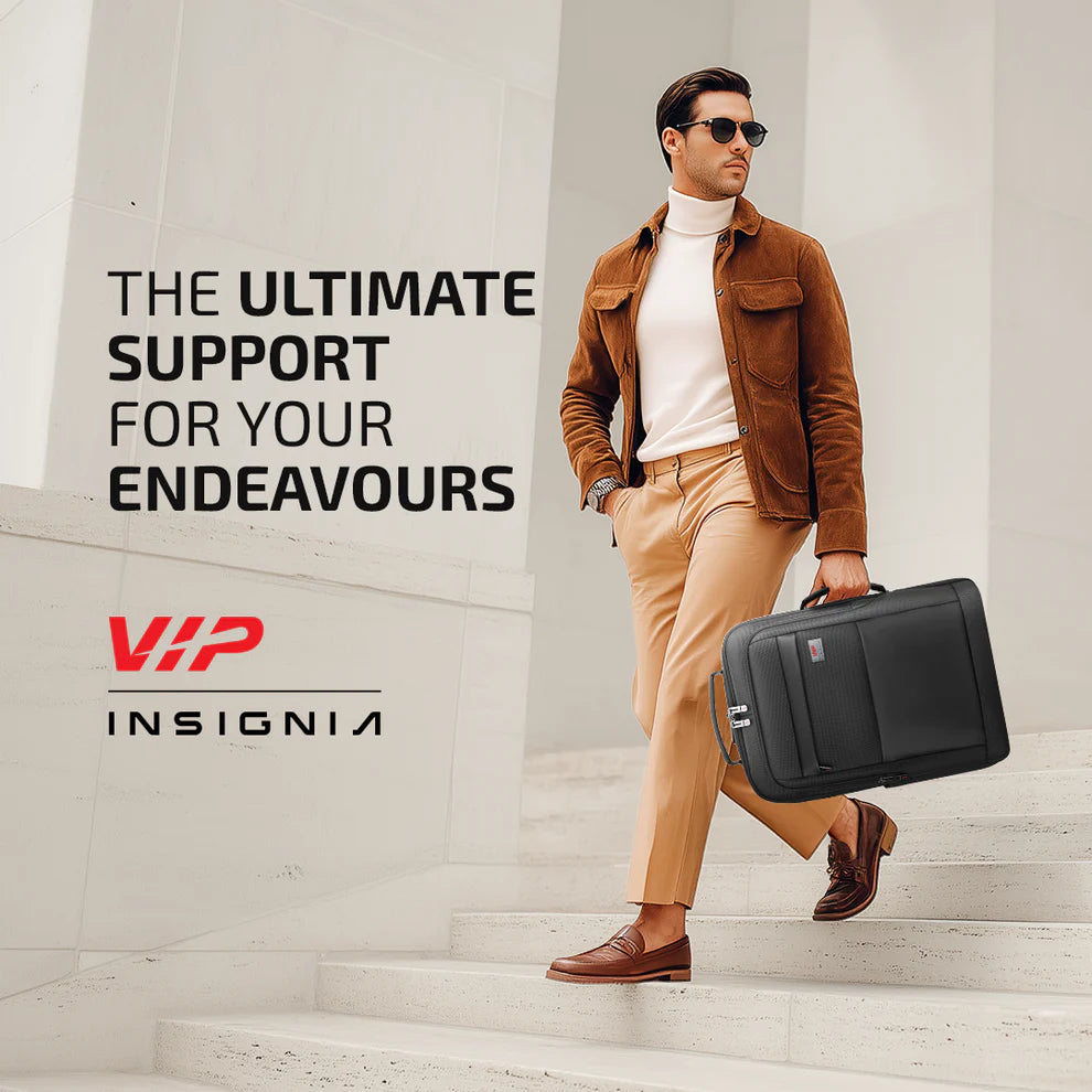 The VIP Legacy Laptop Backpack is a 2-way carry bag that converts into a sleek briefcase for versatile use. With 3 compartments, premium organizer, multiple utility pockets, and USB Type-C port, it’s built for the modern professional. Laptop compatible up to 17", it features padded straps, back panel, and air mesh for sweat-free comfort. A perfect blend of style and function for work, travel, and daily hustle, functional backpack for men and women.